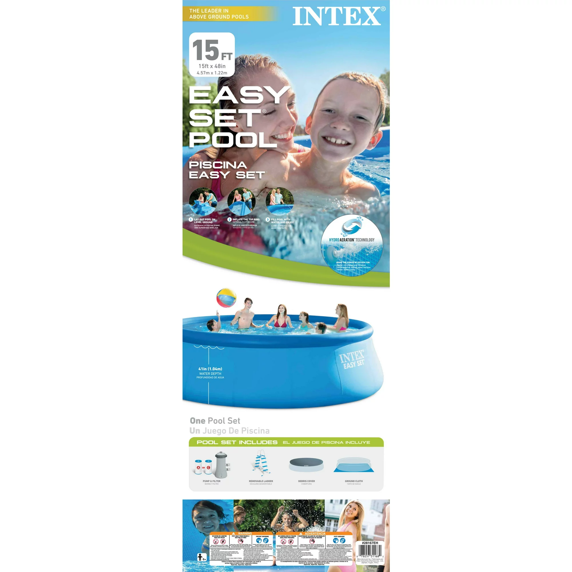 Intex 15′ x 48″ Inflatable Easy Set Above Ground Swimming Pool, Ladder And Pump