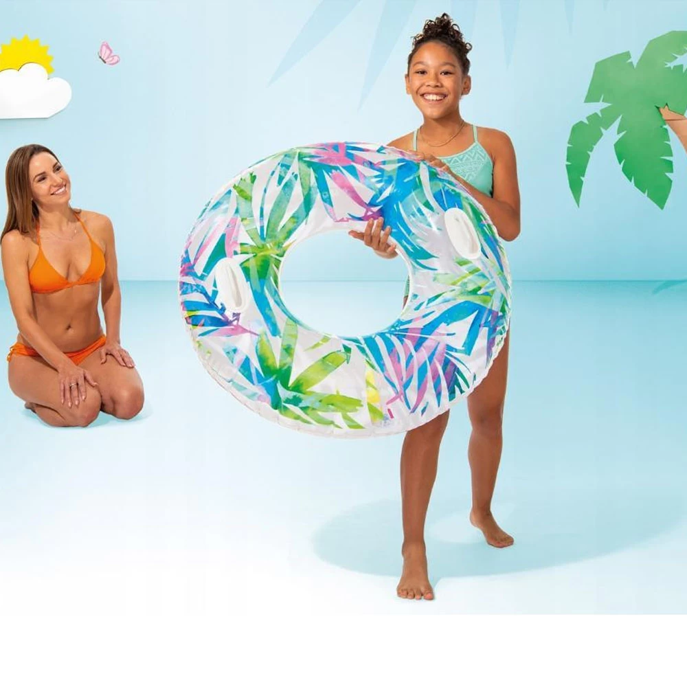 The Intex Lush Tropical Inflatable Pool Swim Tubes 58263 feature eye-catching tropical designs, including palm trees, exotic flowers, and bright colors, creating a festive atmosphere in the pool. These swim tubes are inflatable and lightweight, making them easy to carry and store when not in use. They provide buoyancy and support for users of all ages, allowing you to relax and enjoy the water in style.