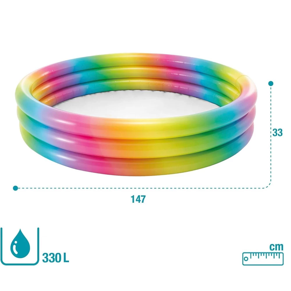 The Intex Rainbow Ombre Inflatable Kiddie Pool is designed to bring vibrant colors and joy to your backyard or outdoor play area. The pool features a beautiful ombre effect, transitioning through the colors of the rainbow. This eye-catching design creates a visually appealing and playful environment for children. The pool’s round shape and inflatable construction make it easy to set up and store, providing a perfect spot for little ones to splash and cool off on hot days.