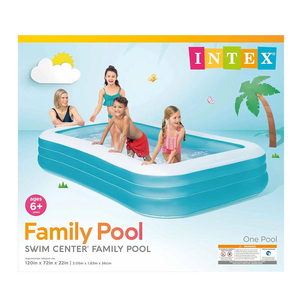 The Intex Pool offers a generous and inviting space for families to enjoy water activities together. With its large size and sturdy construction, this pool is ideal for both adults and children to splash, play, and relax in the water. The classic rectangular shape and vibrant blue color create a refreshing and appealing look, perfect for enhancing any backyard or outdoor area. Its inflatable design makes it easy to set up, store, and transport, providing a convenient option for summertime fun.
