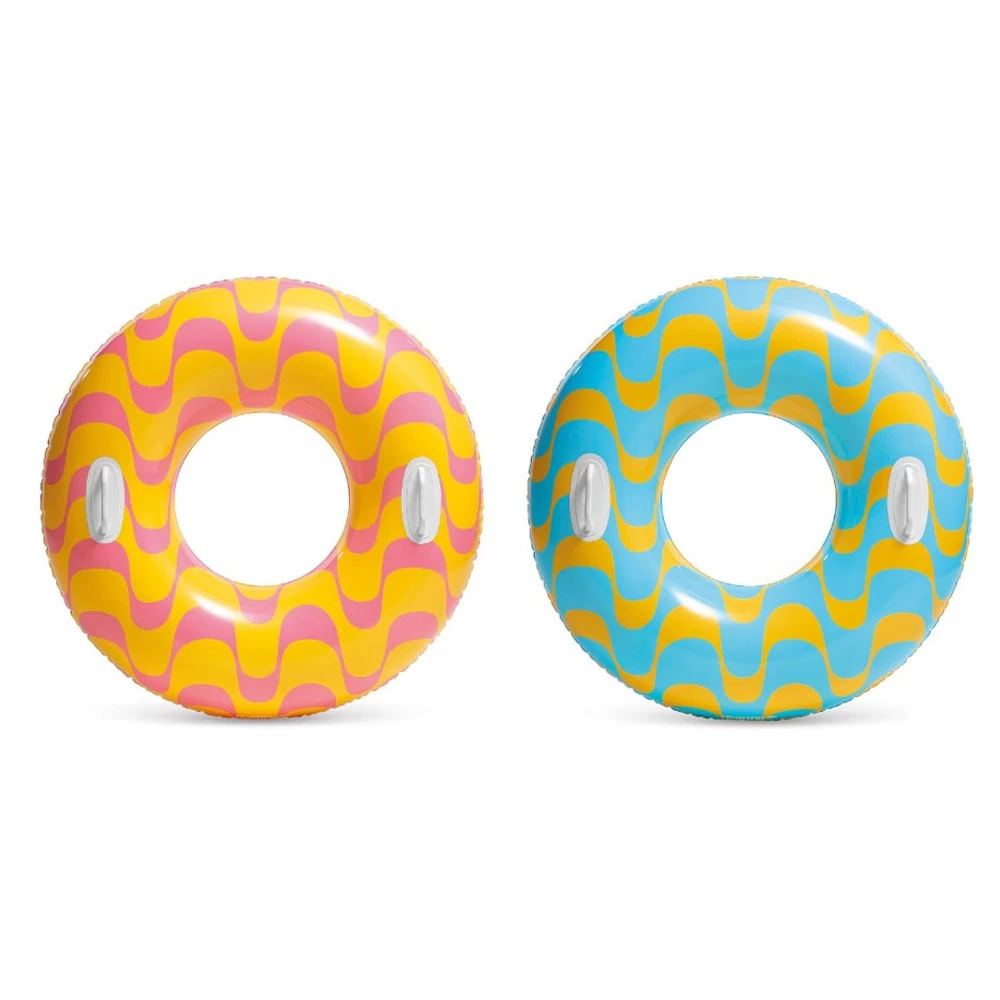 The Intex Swirly Whirly Inflatable Pool Swim Tubes are vibrant and playful swim tubes designed for both children and adults to enjoy in the pool. With their swirly whirly design and bright colors, these swim tubes add excitement and fun to pool time. They provide buoyancy and support for swimmers while they float or play in the wate