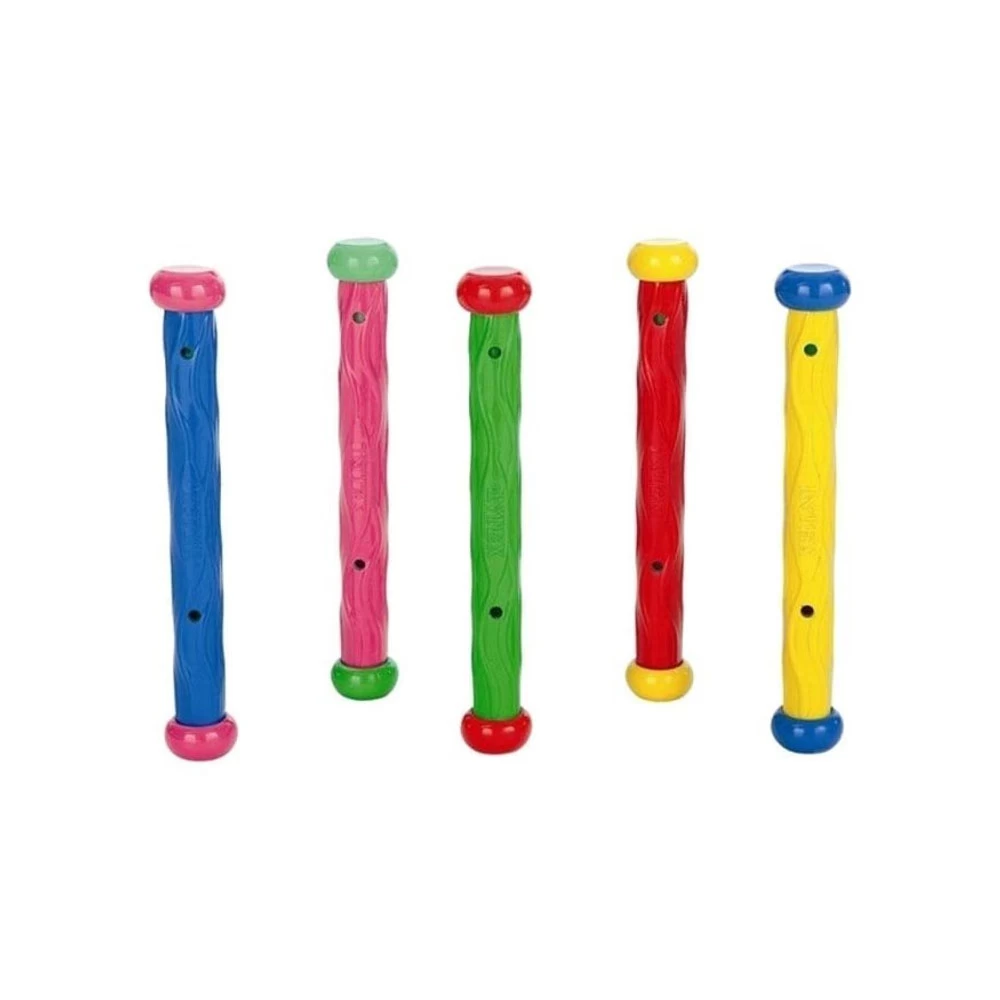 The Intex Underwater Play Sticks are designed to provide fun and excitement during pool time. These sticks are crafted from soft, flexible materials to ensure safety during play. They come in five vibrant colors, making them easy to spot underwater. The sticks sink to the bottom of the pool and stand upright, challenging swimmers to dive and retrieve them. This activity not only adds a fun element to swimming but also helps children improve their diving and underwater swimming skills.